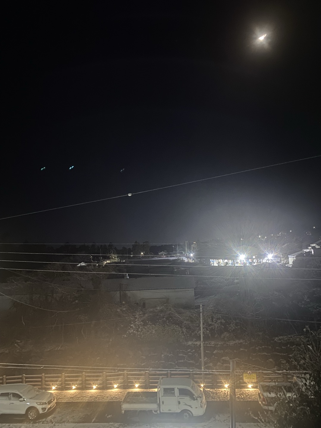 오늘 밤은 오랫동안 기억에 남을 것 같다. 제주에서 이렇게 눈을 즐길 수 있는 날은 많지 않기에 더욱 의미가 깊었다. 사랑하는 가족과 함께한 따뜻한 겨울밤, 마음속에 오래도록 간직하고 싶은 순간이었다.