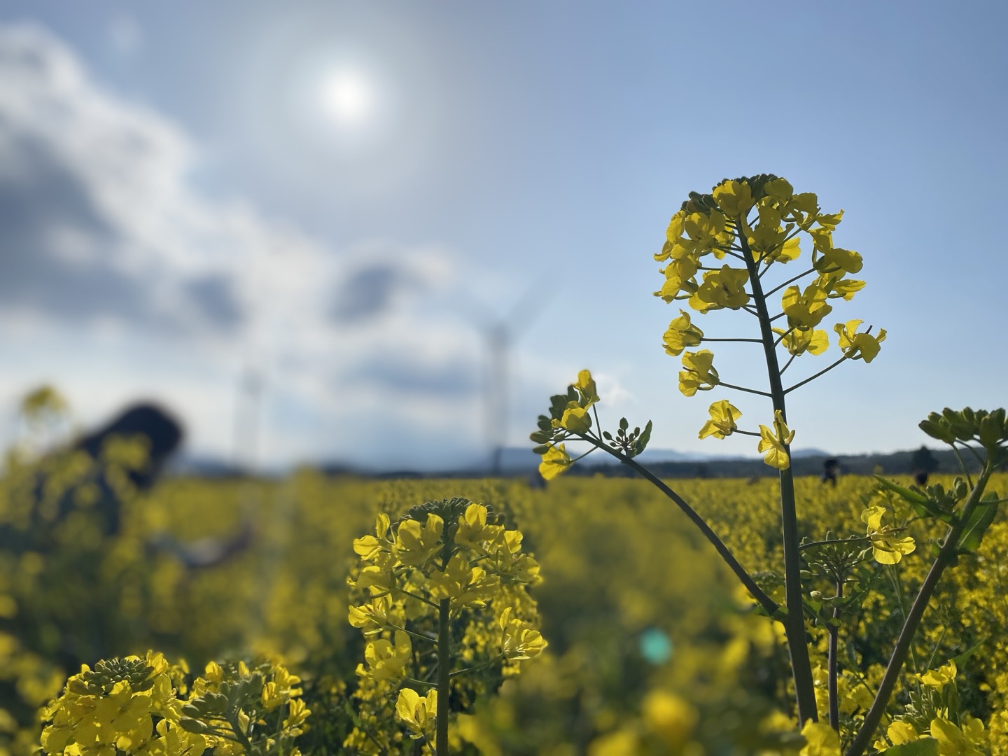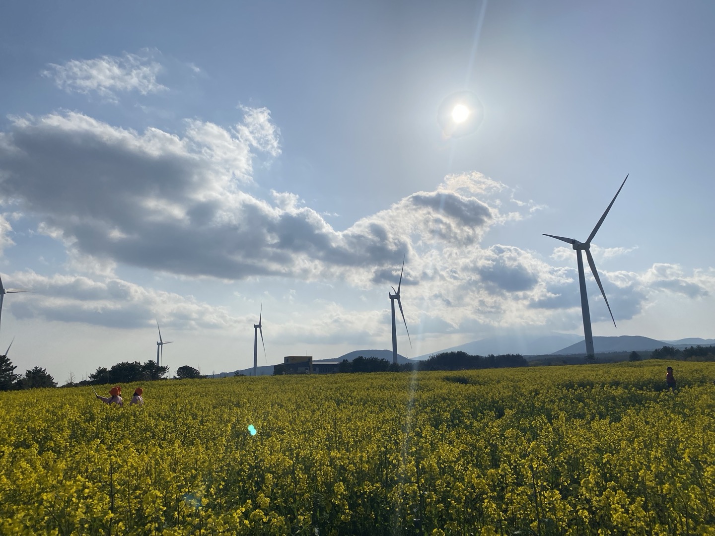 - 파란 하늘과 노란 유채꽃이 대비되면서 선명한 색감의 사진을 연출할 수 있습니다.